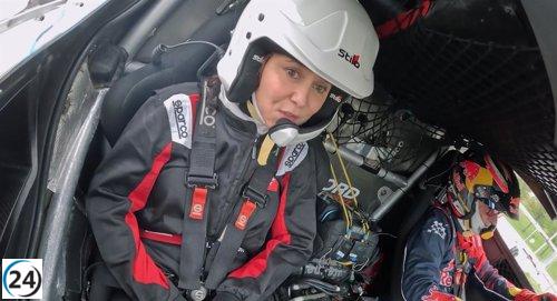 Ayuso acompaña a Carlos Sainz en el primer recorrido del nuevo circuito de Fórmula 1 en Ifema.