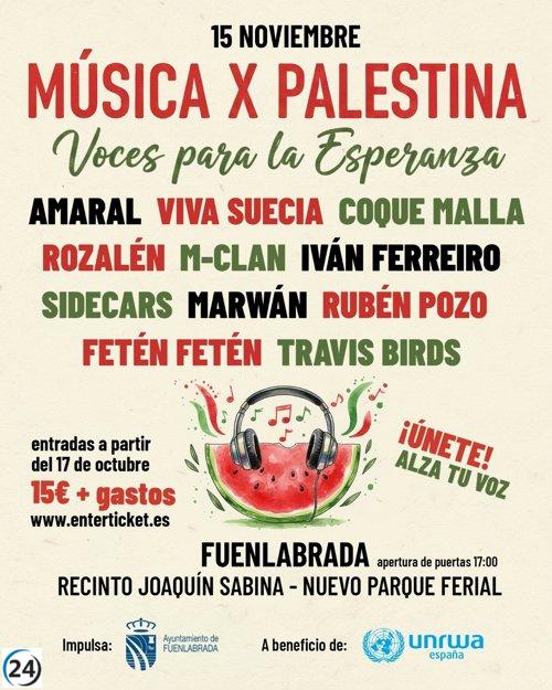 Suspendido el concierto benéfico 'Música X Palestina' en Fuenlabrada debido a pronósticos de lluvia.