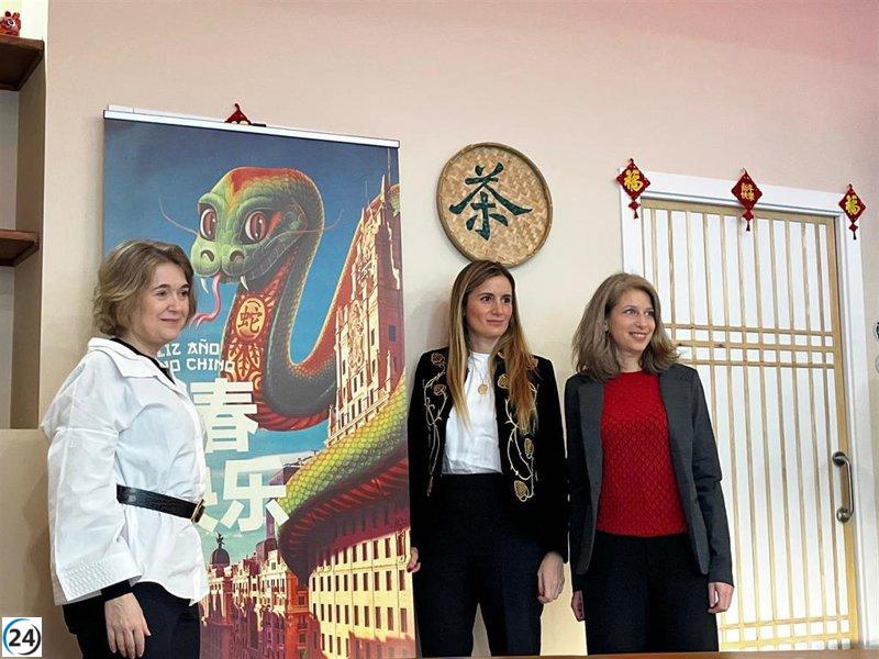 MADRID, 27 de enero. Una serpiente estilizada enroscándose entre las emblemáticas estructuras de la Gran Vía, destacando el Edificio Telefónica, da el tono festivo al inicio de esta celebración cultural. Este cartel fue revelado en una ceremonia en la que participaron representantes del Ayuntamiento y la Embajada de China en Madrid, marcando el inicio oficial de las actividades que empezarán el 29 de enero.